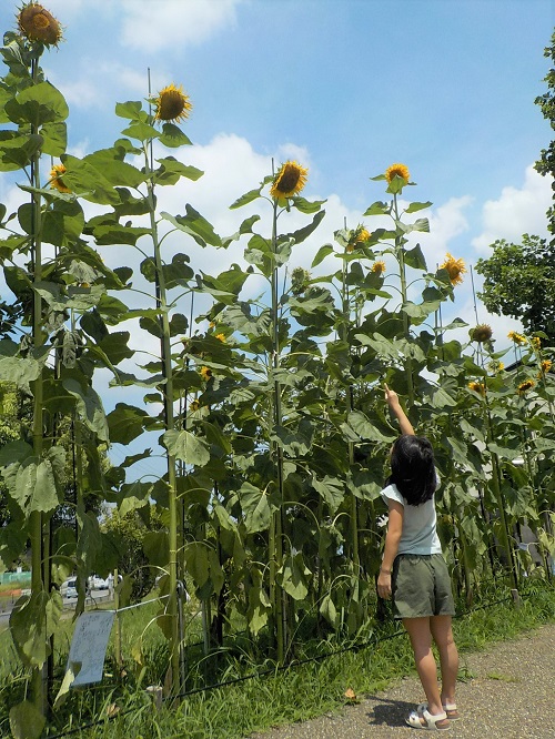 ど根性ひまわりも開花し、背丈2mの者や沢山の花を付ける者など、様々な姿を見せてくれました。