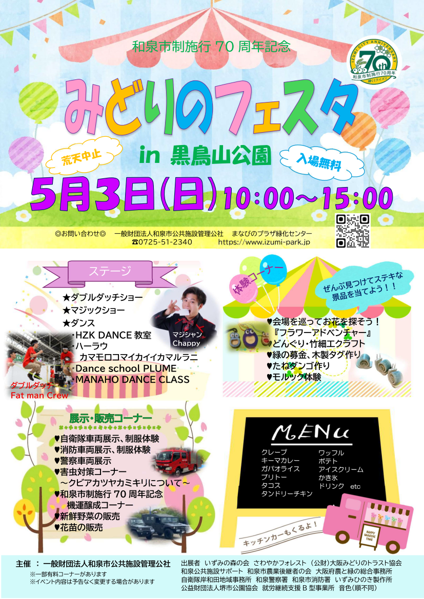 令和8年5月3日(日祝)に黒鳥山公園にて「みどりのフェスタ」を開催します。